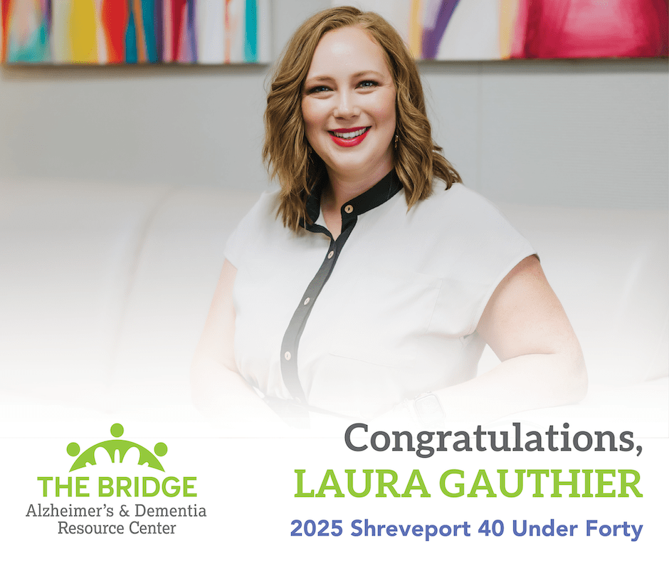 News 60% of health care workers surveyed believe the U.S. health care system is not effectively helping patients and their families navigate dementia care. The Latest News From The Bridge Featured, News, Newsletter The Journey – March 2026 In the March edition of The Journey, we are introduced to Rosie James, a caregiver featured in this month’s episode... Read More Featured, Newsletter The Bridge Alzheimer’s & Dementia Resource Center Launches “Light the Way” Podcast Shreveport, LA – The Bridge Alzheimer’s & Dementia Resource Center has announced the launch of Light the Way, a new... Read More Featured, Newsletter The Journey – February 2026 February is a time to recognize and celebrate the dedication, compassion, and strength of caregivers in our community. Join us... Read More Featured, Newsletter 2025 Year End Campaign As we reflect on 2025, we are deeply grateful for the supporters who make our work possible. Together, we reached nine... Read More Newsletter The Journey – November 2025 The November 2025 edition of The Journey focused on our upcoming Service of Remembrance and Conference on Alzheimer’s and Dementia.... Read More Bridge Blog, Featured Laura Gauthier Makes 2025 40 Under Forty List Congratulations to our very own, Laura Gauthier, Assistant Executive Director, for making the 2025 Shreveport 40 Under Forty list! We... Read More
